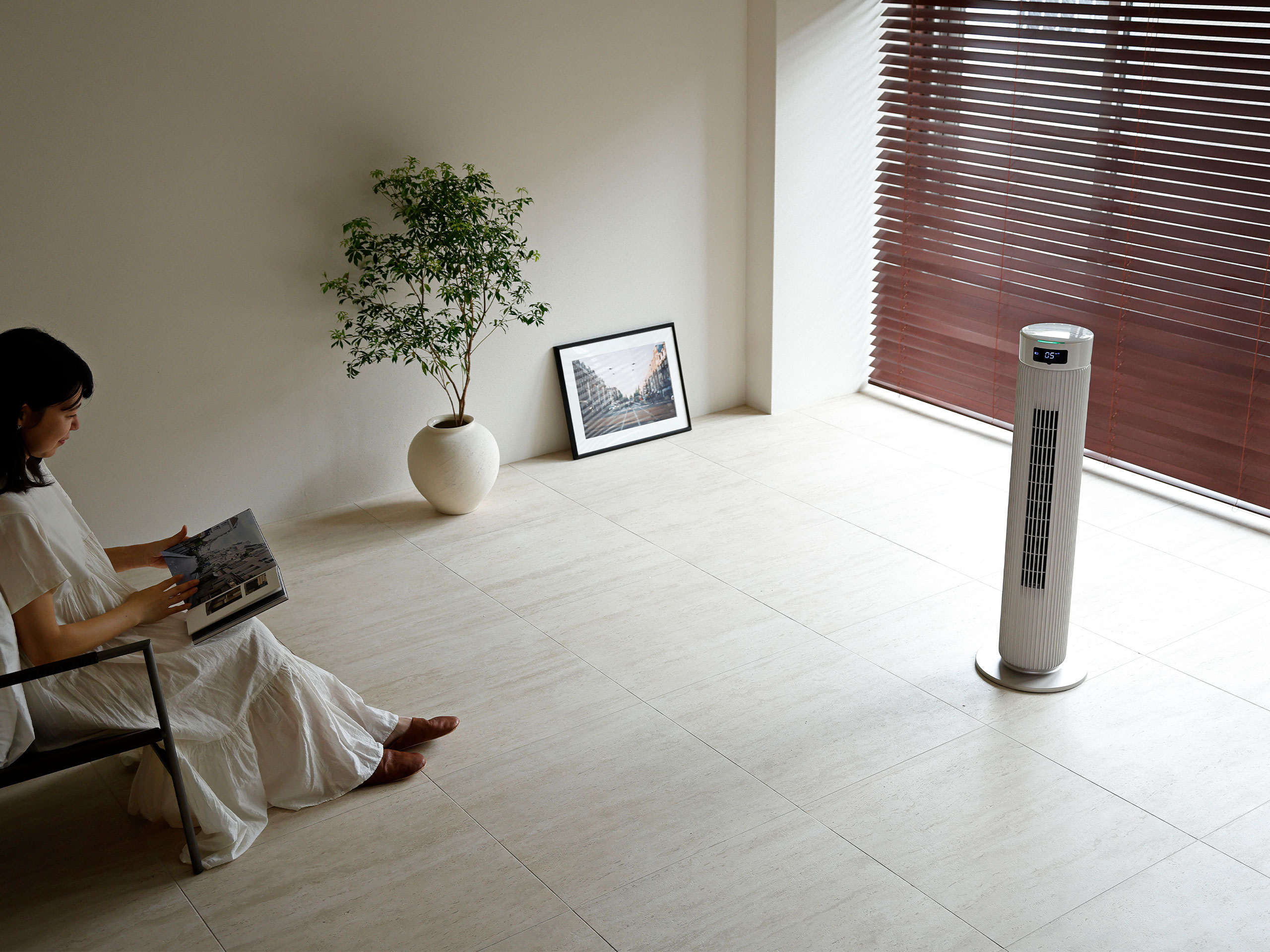 送来舒适的风。让家中时刻清爽畅快。从能吹遍全屋的强劲风,到如微风般轻柔温和的自然风,尽在特有 「FUWA BYU-N UZU」技术。最大 330°摆头角度。即便是宽敞的房间,也能将强劲的风吹遍每个角落。